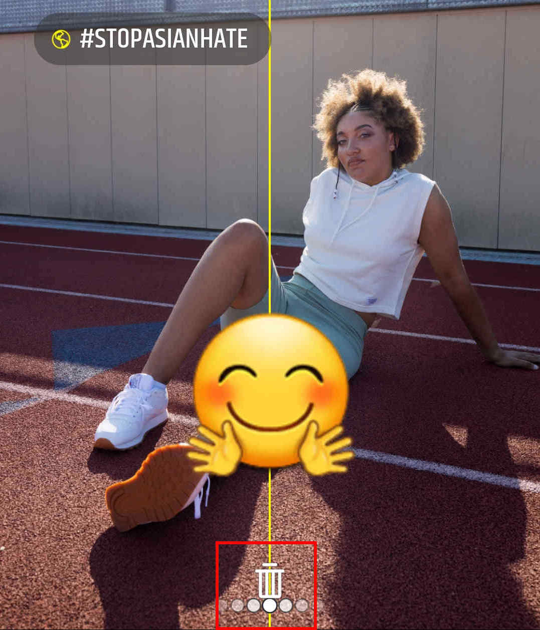 - With the premise that you’ve made an imperfect sticker, tap and hold your finger on the sticker that you want to delete until a trashcan icon appears at the bottom of the screen.