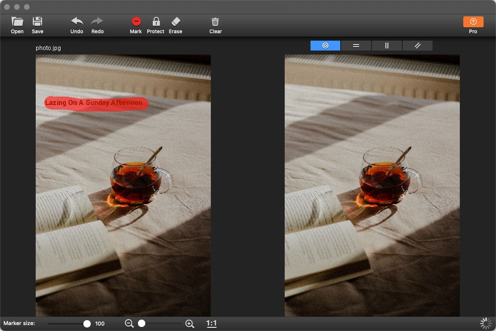 - Import the image you need to remove the watermark from and click on the Mark tool on the top column of the screen.